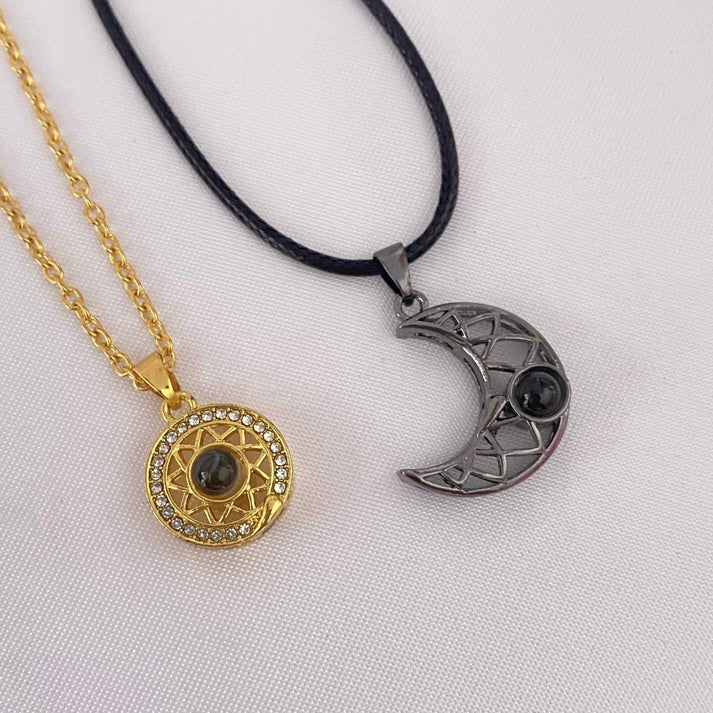 Par de Collares, uno de una Luna y otro de Sol que ambos significan la unión de polos, equilibrio y estabilidad emocional, el paso del tiempo, cambios vitales.